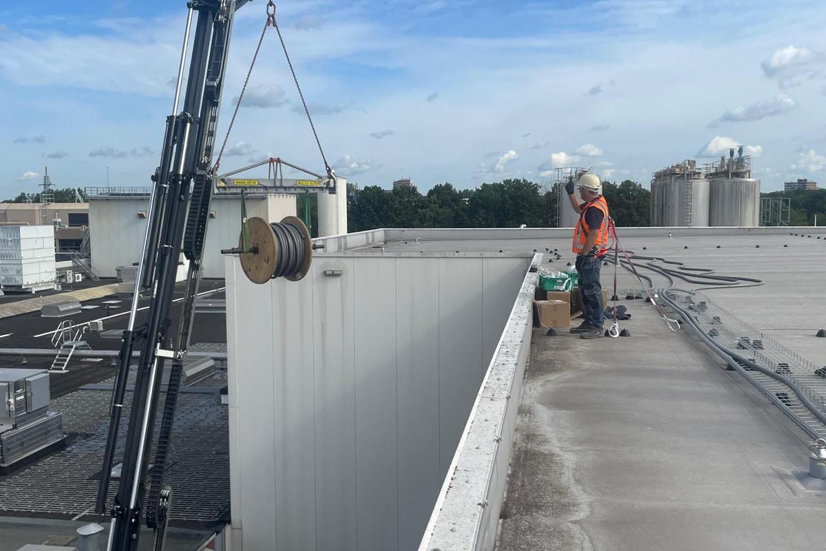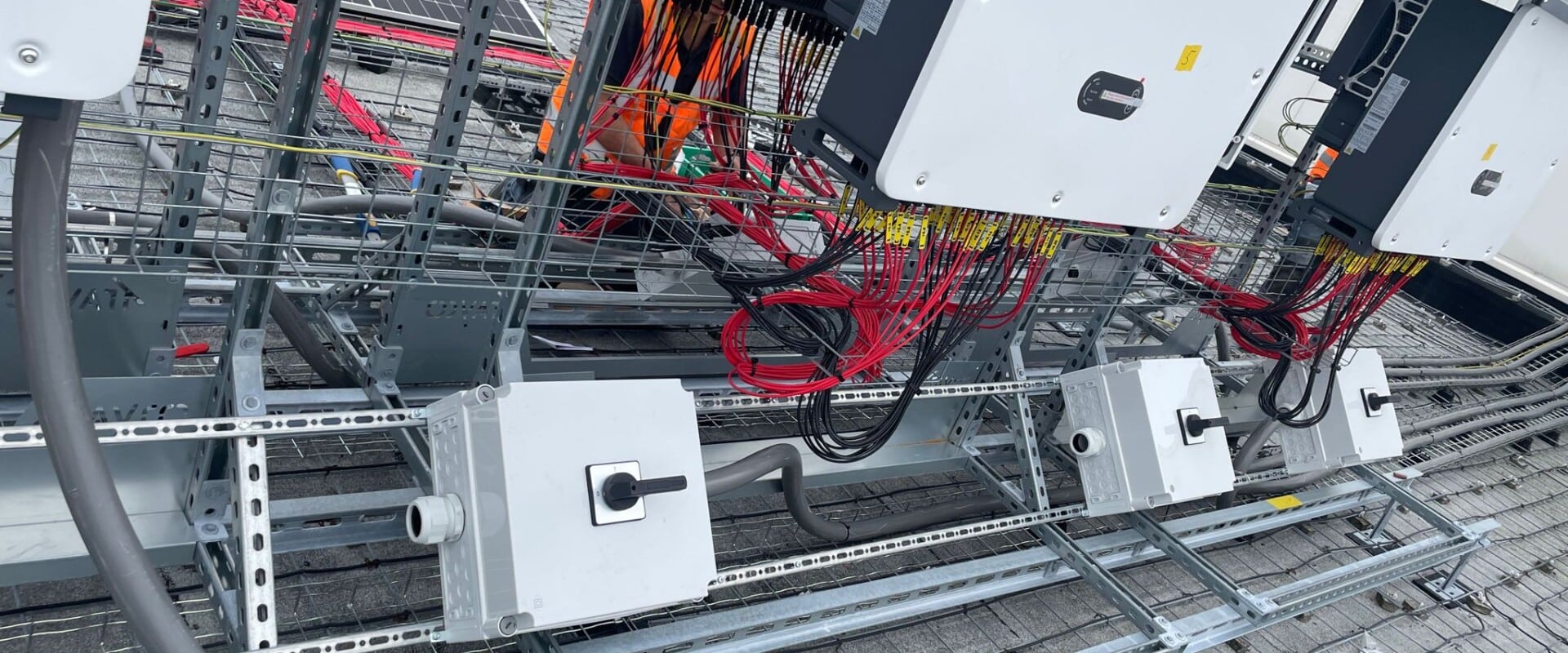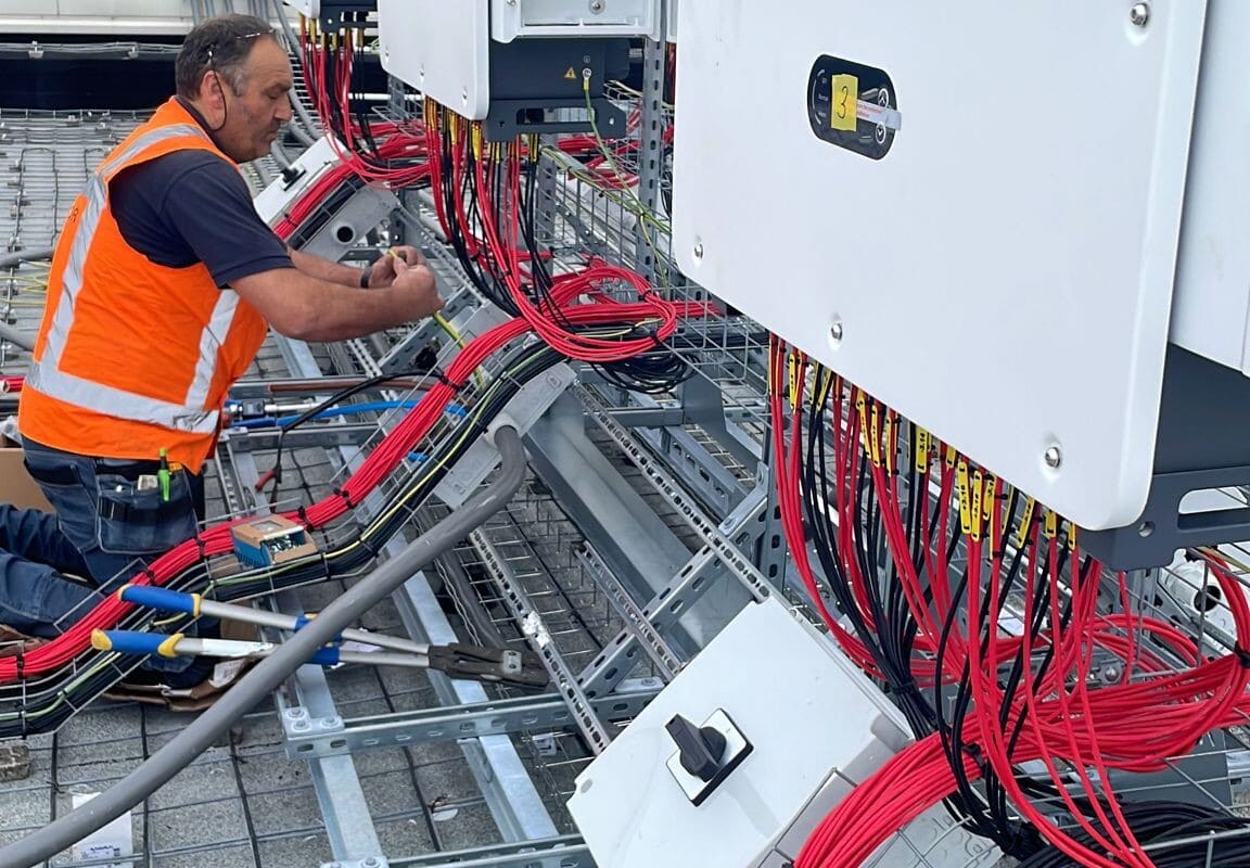 Voor dit project in Ede ging het om een aansluiting van 1250A zonnestroom (een gemiddele woning heeft een 25A aansluiting). Bijna alles moest voor dit project custom made gemaakt worden. Van de buitenkast tot de koperen strips om aan te sluiten op de transformator. Door de zonnepanelen direct aan te sluiten op de transformator was een complete vervanging van de hoofdverdeelkast niet nodig bij dit project. De zonnestroom is op de meest efficiënte manier aangesloten. De stroom kan direct het pand in om door de installatie gebruikte te kunnen worden of om direct terug te leveren aan het net.